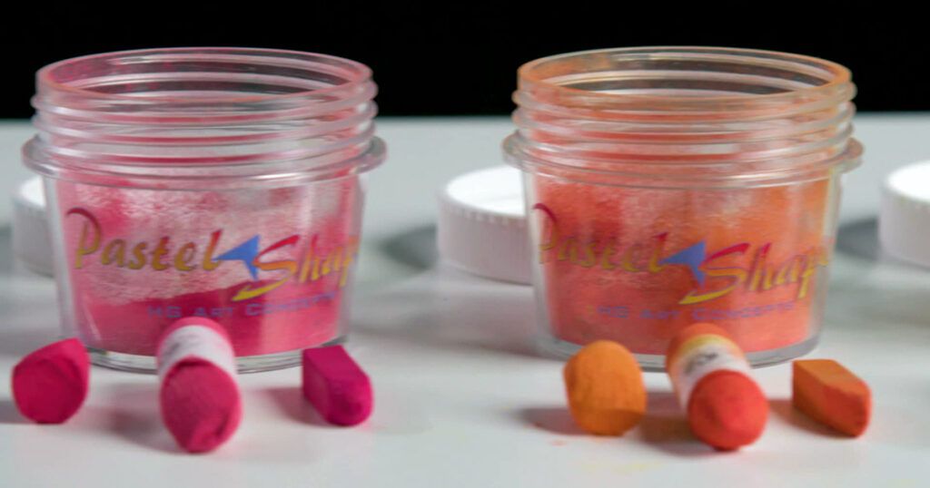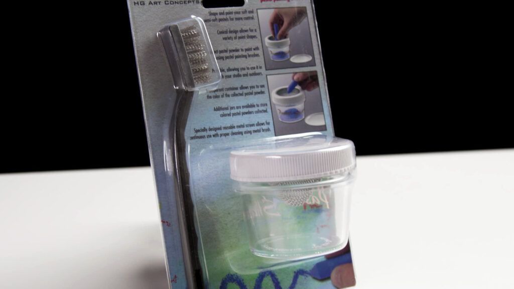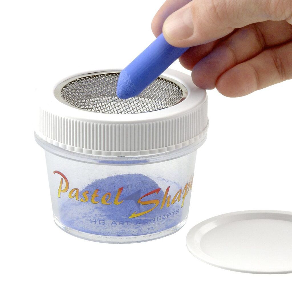 The Pastel Shaper’s unique jar collects the pastel powder created by shaping your pastels; use it for painting backgrounds with pastel brushes, blocking in backgrounds with solvents, painting with soft pastel tools or foam applicators, or even your finger. No more wasting valuable pigment by sharpening on a sanding pad!
